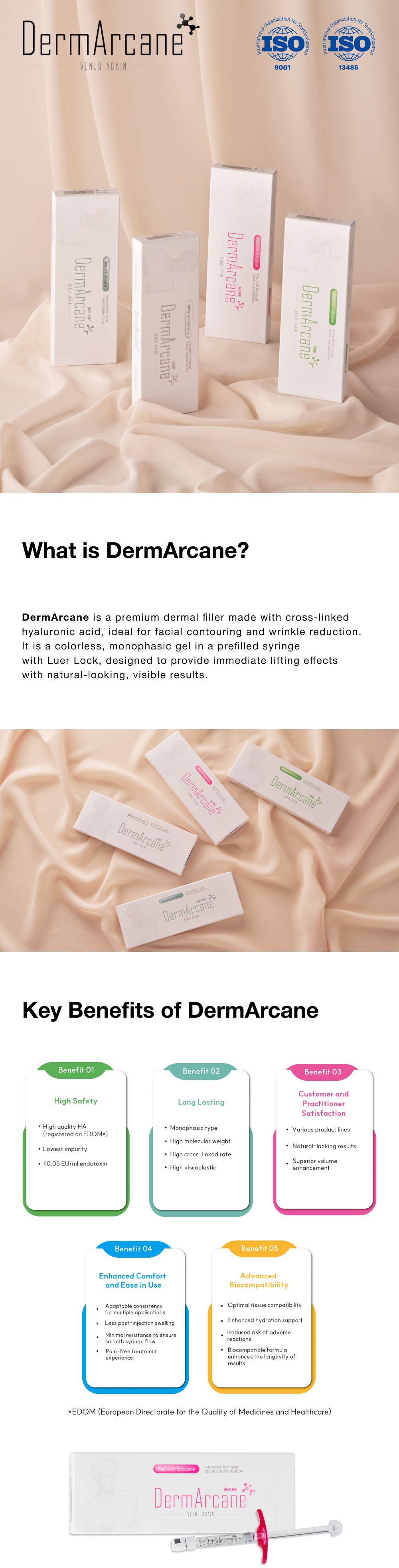 DermArcane is an advanced monophasic filler with cross-linked hyaluronic acid for restoring deeper volume and enhancing facial contours.